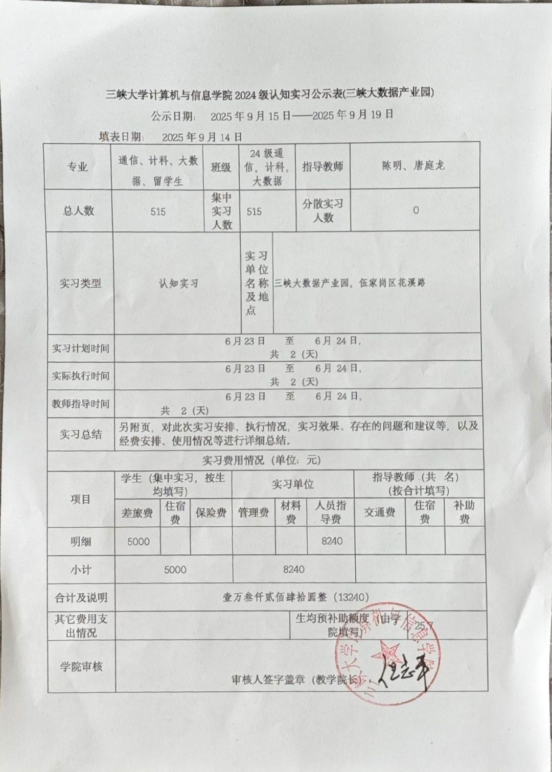 下一条:计算机与信息学院计科21级《毕业实习》经费公示